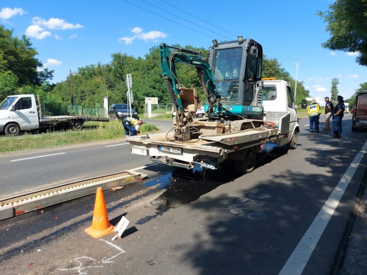 Belerohant egy álló, földgépet szállító, platós teherutóba egy személygépkocsi sofőrje, ami az ütközéstől egy éppen kanyarodni készülő kishaszonjárműnek is nekiütközött pénteken a 4-es főúton, Kőlaposnál.