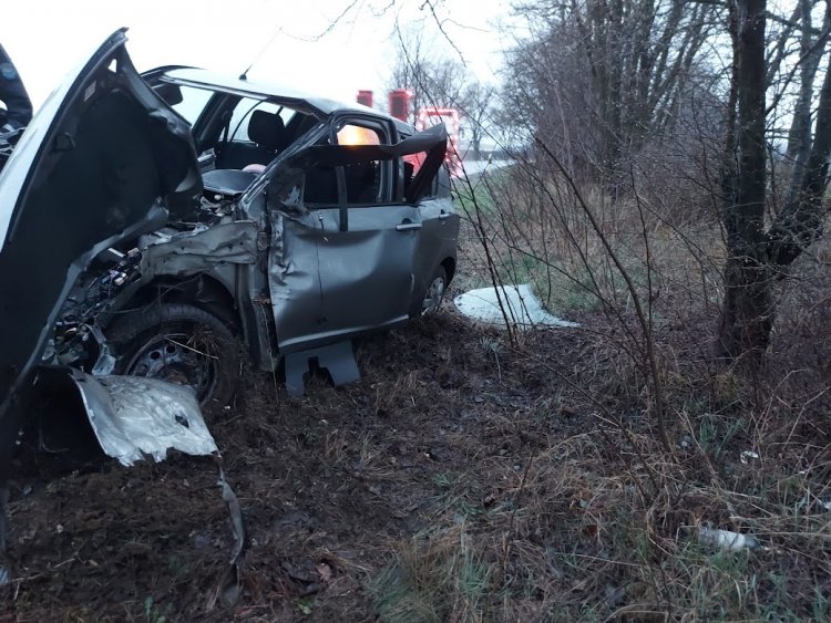 Pénteken korán reggel egy személyautó előzés közben megcsúszott, nekicsapódott egy fának, és az oldalára borult.
