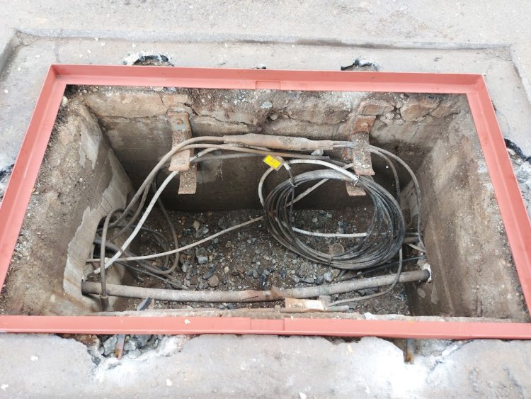 Közműfedlapok cseréjét végzi a Magyar Telekom a Kossuth utcán.