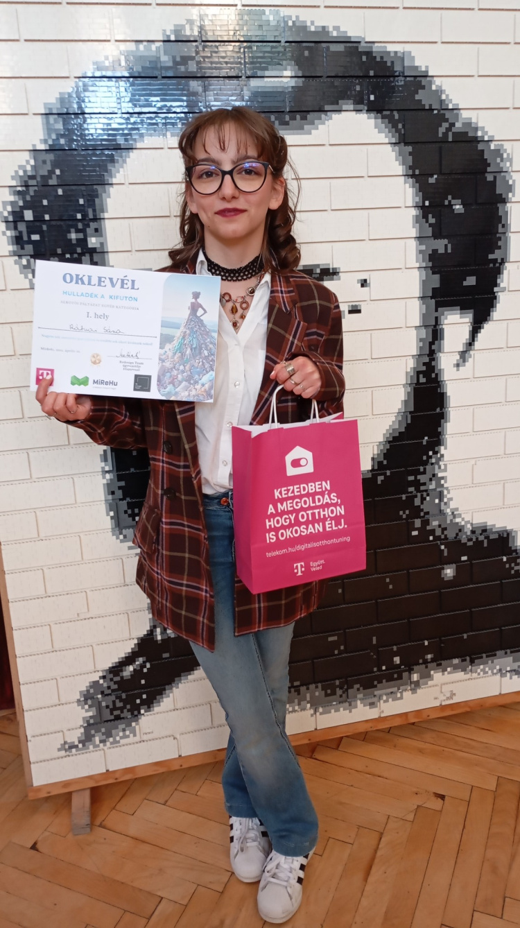 Az országos versenyen Rátvai Sára 11.a osztályos tanuló kreatív és szépen kidolgozott kreációja I. helyezett lett.