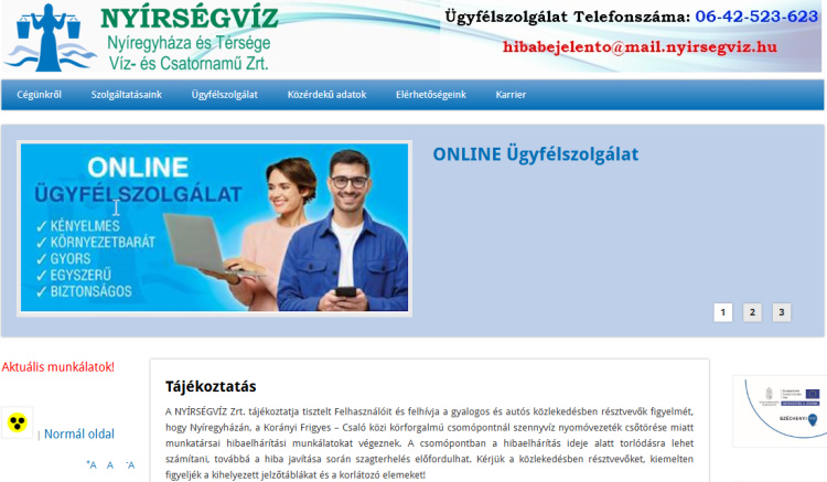 Központi e-mail: nyirsegviz@nyirsegviz.hu