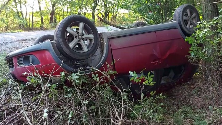 Egy nagy kanyarba letért az útról, oldalára borult, több fának is nekiütközött és az árokban landolt. A sofőrt kórházba szállították.