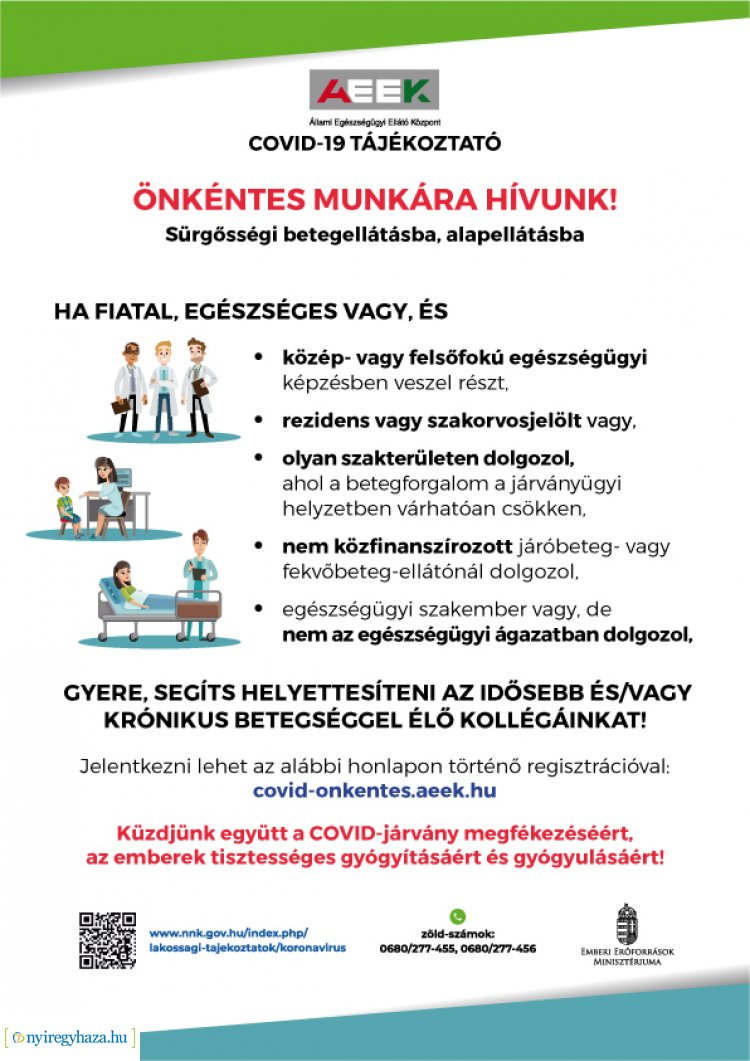 Emberi Erőforrások Minisztériuma: csaknem kilencszáz egészségügyi önkéntes jelentkezett