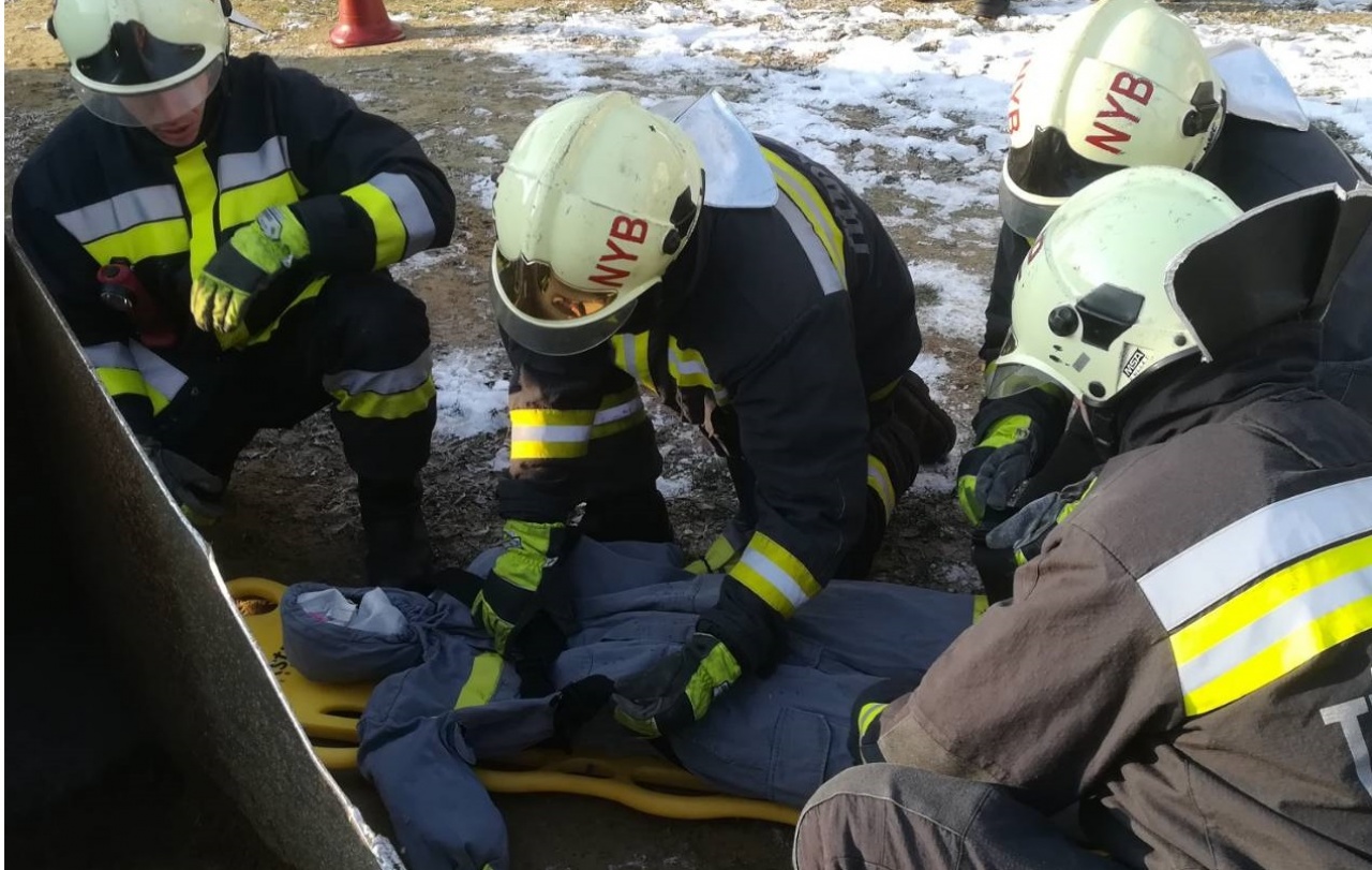Az állomány speciális körülmények között, hidegben és csúszós talajon emelőpárna használatával azt gyakorolta, hogy egy több tonnás homlokrakodó toló lapja alá esetlegesen beszorult sérültet hogyan tudnak minél hatékonyabban kimenteni.