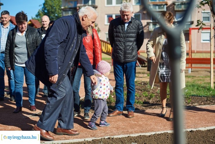 Az elmúlt 6 évben tizenegyet építettünk, és 31-et felújítottunk, hogy modern, biztonságos legyen. Valóban ez annak a programnak a része, hogy közösségi színtereket építsünk. Itt ez a tömbbelső – Jósavárosban is építettünk egy tömbbelsőben játszóteret -, biztonságos a gyerekeknek, nem tudnak kiszaladni egyből az útra. Persze nem csak a gyerekeknek, minden generációnak épült. Azért ültettünk 71 fát, legyen árnyék, padokat raktunk ki és nagyon remélem, hogy az itt lakó családok örömmel fogják birtokba venni, és nagyon sok gyerek szaladgál majd itt ezen a játszótéren is.