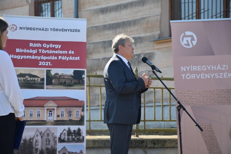 Dr. Vadász Mihály a Nyíregyházi Törvényszék elnöke köszöntő beszédében hangsúlyozta az Országos Bírósági Hivatal által az elmúlt években rendszeresen meghirdetett „Ráth György bírósági történelem és hagyományápolás” elnevezésű pályázat jelentőségét annak érdekében, hogy a bírósági szervezet történetét, hagyományait ápolhassuk, megőrizhessük. Ennek egy nagyszerű módja az emléktábla elhelyezése a régmúlt bíróságainak épületén, ezzel megőrizve elődeink emlékét az utókor számára is, tisztelegve munkásságuk előtt.