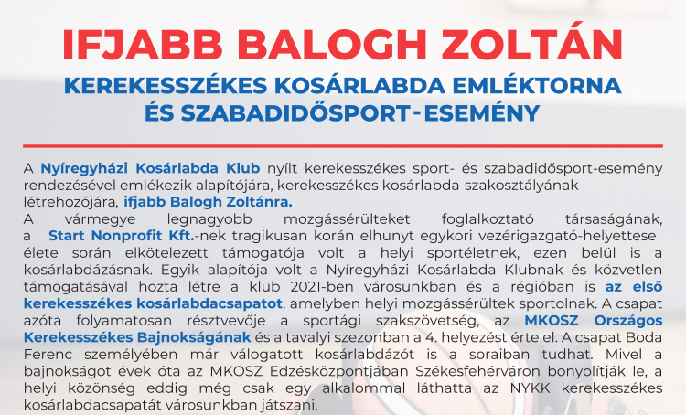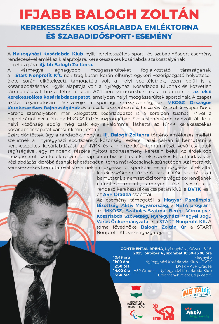 Kerekesszékes kosárlabda emléktornát és szabadidő-eseményt rendeznek október 4-én a Continental Arénában.