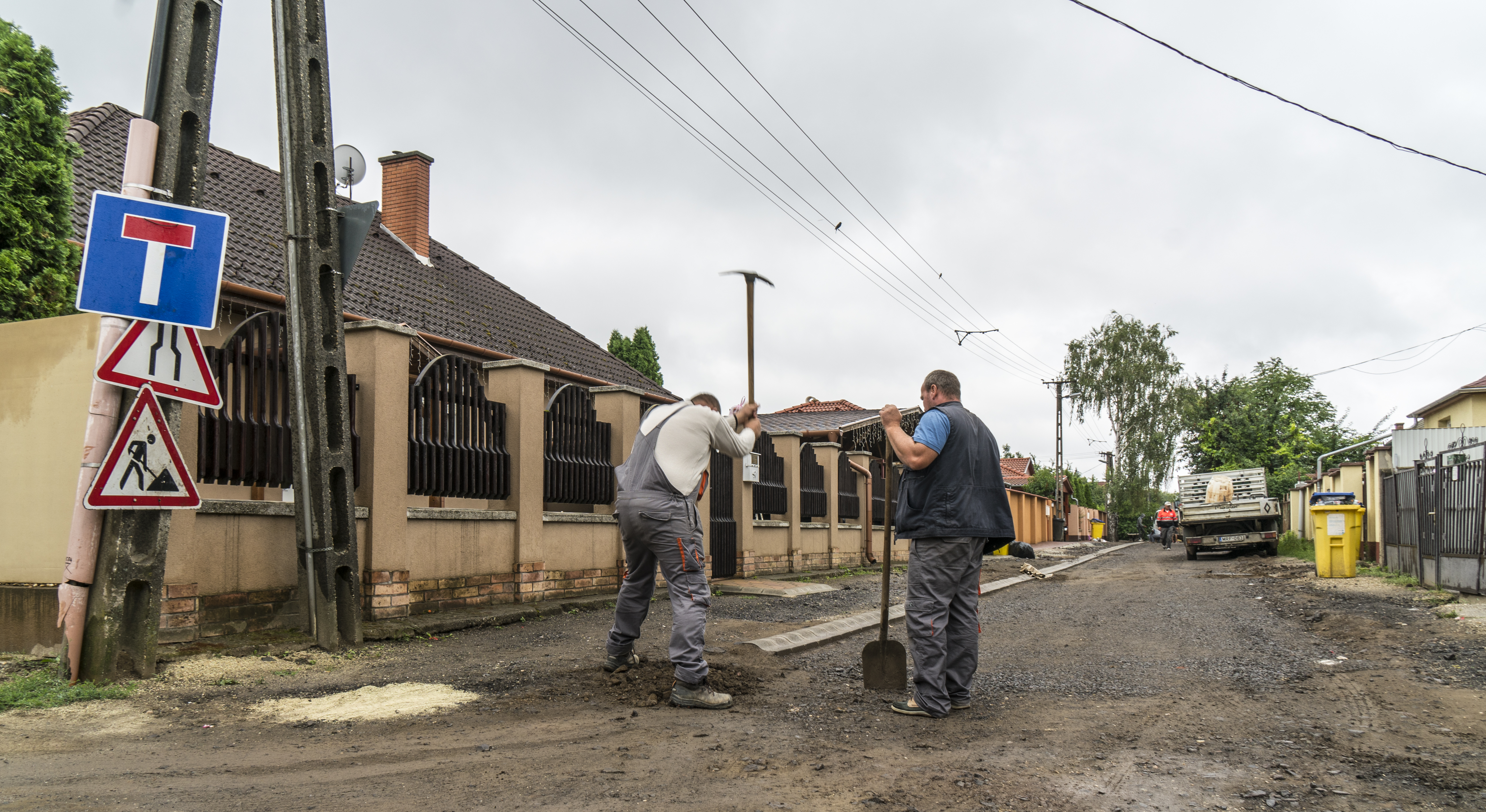 A Platán utcában az út fele már aszfalton járható, a következő héten pedig a teljes felület aszfaltburkolatot kap.