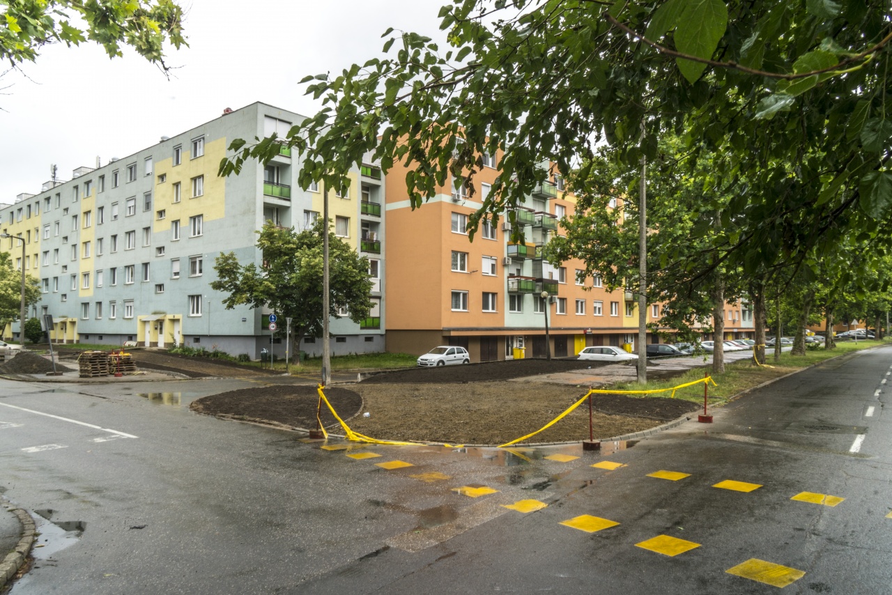 Az Eperjes utcai járda aszfaltozását a héten befejezték, így elkezdődhet a zöldfelület rendezése.