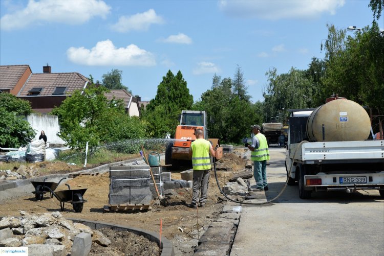 Jó ütemben halad a Csaló közi körforgalom építése. Most a közműkiváltáson dolgoznak a szakemberek. A tervek szerint jövő hétfőn már befedik a föld alatti vezetékeket, egy hét múlva pedig végeznek az út keleti és nyugati szakaszának burkolásával, szegélykövekkel jelölik ki a parkolóhelyeket.