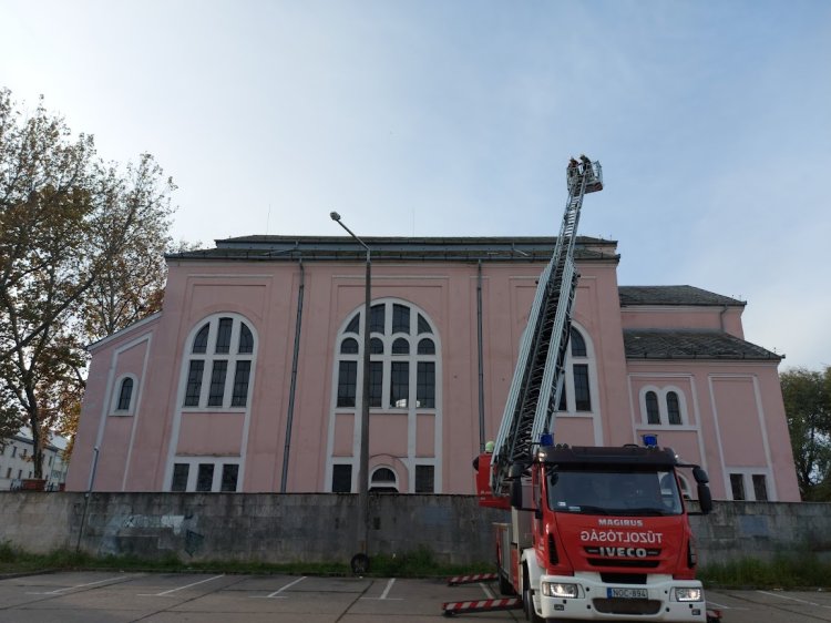 A nyíregyházi hivatásos tűzoltók gépezetes tolólétra segítségével a felszakadt lemezt rögzítették és a balesetveszélyt megszüntették.