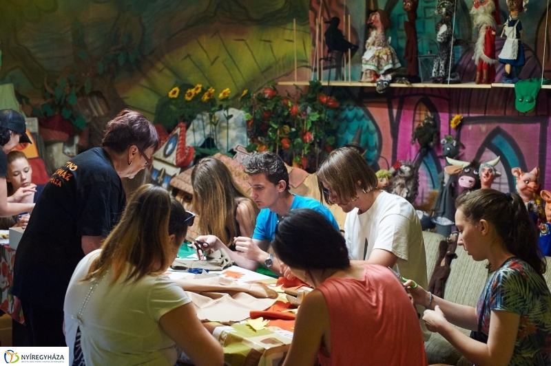 Nagy segítség a középiskolások munkája a Burattino Bábszínházban is. Az iskolai közösségi szolgálatot teljesítő fiatalok ott az előadások lebonyolításában segítenek. Ha kell, akkor jegyet szednek vagy a ruhatárban dolgoznak. A napokban pedig a következő asztali bábjáték díszleteit és bábjait készítik.
