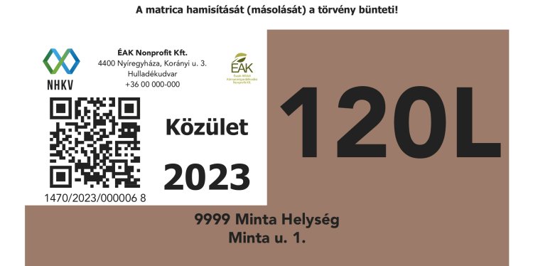 2023 év elején is kézhez kapja valamennyi ingatlanhasználó a hulladékgyűjtő edényre felragasztandó matricát, melyet a közszolgáltatási díjat beszedő NHKV Zrt., a 2022. év utolsó negyedévére vonatkozó, 2023 januárjában postázott számlalevéllel együtt küld ki.
