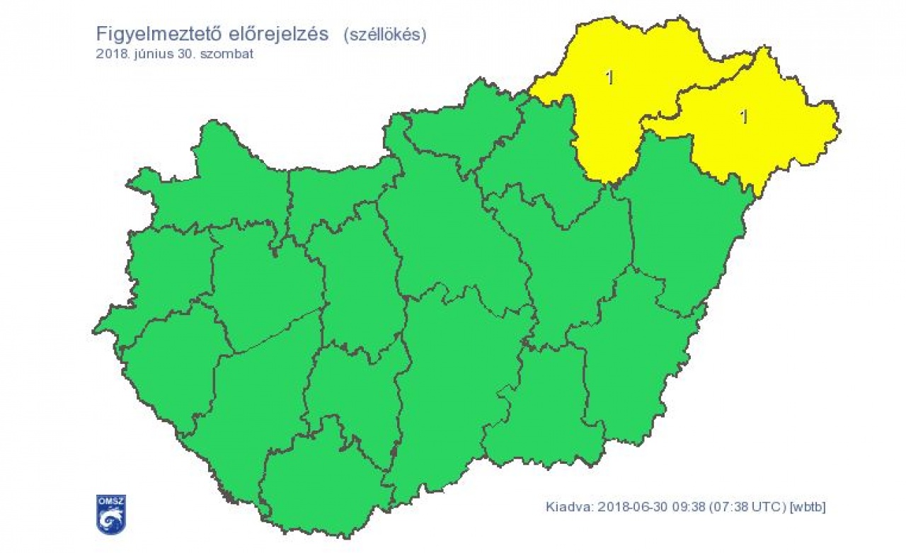 Borsod-Abaúj-Zemplén és Szabolcs-Szatmár-Bereg megyében az erős széllökésekre figyelmeztet az Országos Meteorológiai Szolgálat.