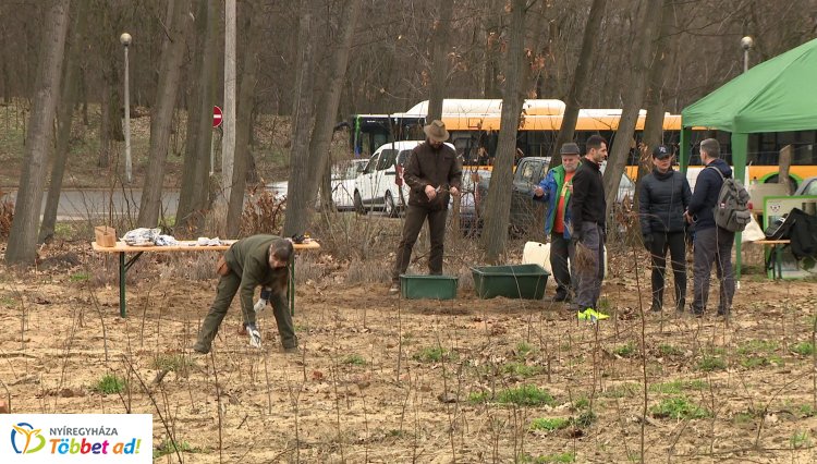 Több mint százan jelentkeztek fát ültetni a Nyírerdő Zrt. felhívására. A cég tavaly a Sóstói út melletti területeken termelte ki a fát, ezek helyére pedig újakat ültettek. Az aszályos ősz miatt sok csemete kiszáradt, ezek pótlását kezdték meg önkéntesek bevonásával. A munkára jelentkezni lehetett.