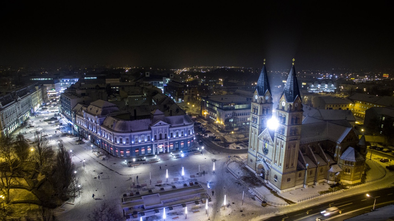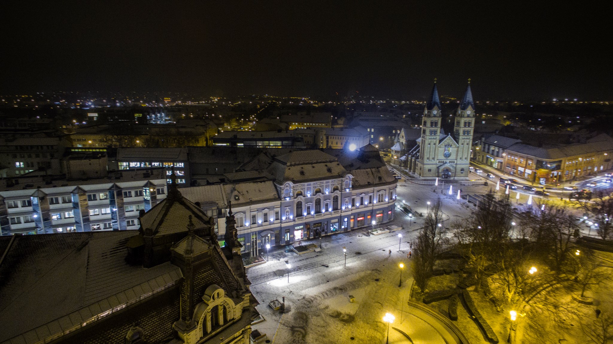 A hótakarón megcsillanó esti fényeket madártávlatból örökítette meg drónpilótánk.