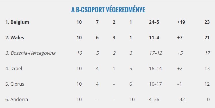 Az EURO2016 sorsolásánál a B csoportba kerültek a belgák. És 23 ponttal minden különösebb megerőltetés nélkül jutottak tovább a selejtezőből a döntőbe. Igaz csak 2 ponttal szereztek többet, mint Wales, de Bosznia-Hercegovina, Izrael, Ciprus, és Andorra nem késztette különösebb erőbedobásra. Hazardék egyetlen vereségüket Wales-ben szenvedték el, Bale volt velük szemben eredményes.