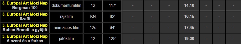 A nyíregyházi Krúdy Gyula Art Mozi kínálata:
