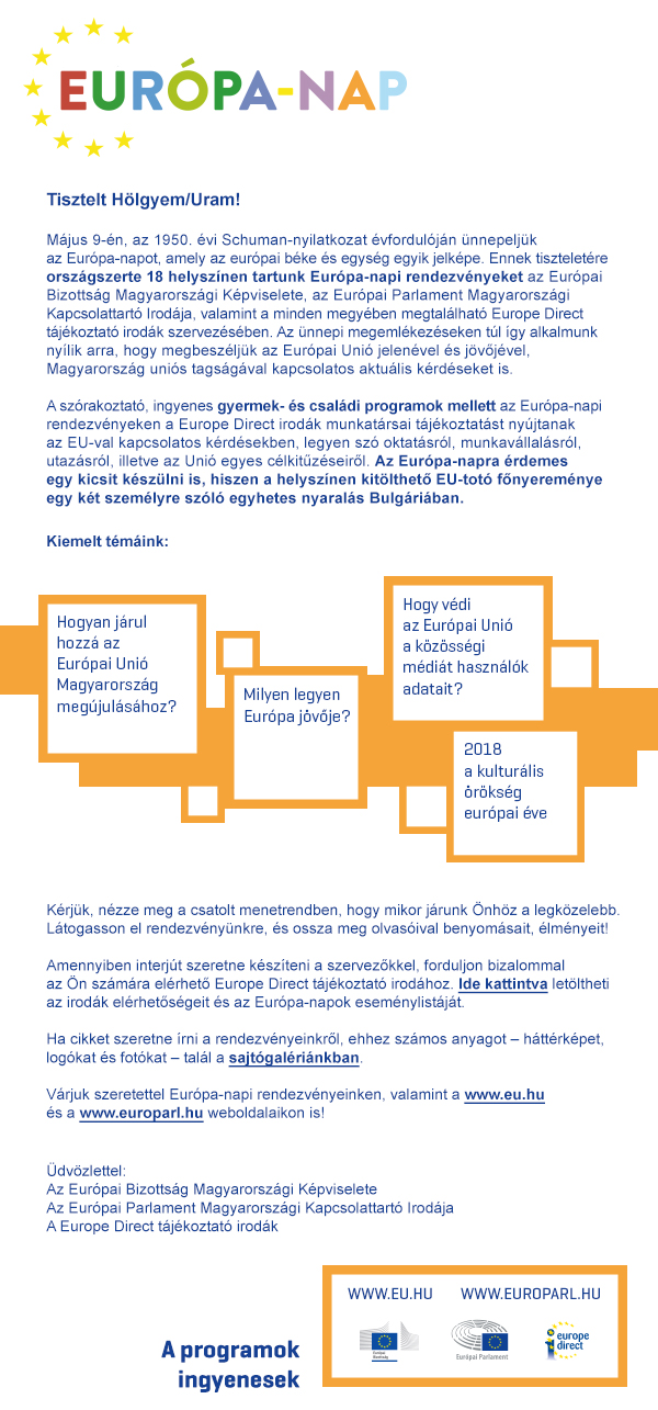 Európa-napok az ország 18 városában – Május 10-én Nyíregyházán is!
