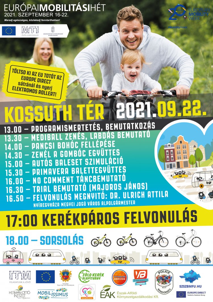 Idén huszadik alkalommal rendezik meg az Európai Mobilitási Hetet, melynek célja, a környezetbarát és fenntartható városi közlekedés népszerűsítése. Európa legnagyobb közlekedési és környezetvédelmi kampánya egyre népszerűbb Magyarországon is, az ehhez kapcsolódó autómentes napot idén szeptember 22-én tartják Nyíregyházán, melyet számos program kísér majd a város főterén.