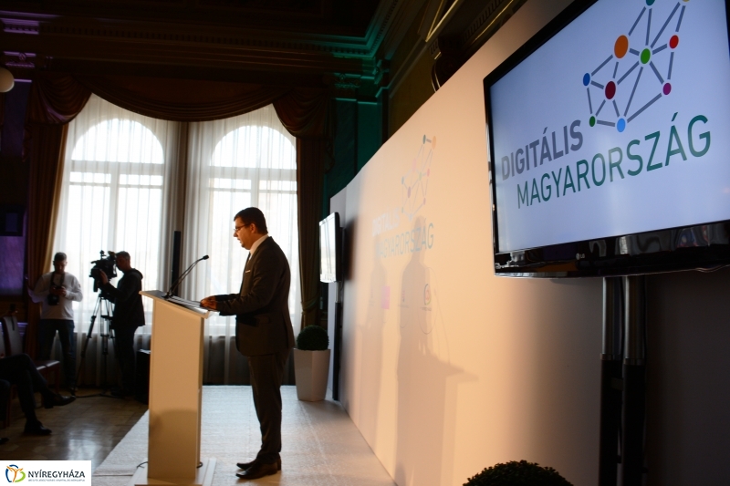 – 2018-ra minden háztartás számára elérhetővé tesszük a szupergyors internet lehetőségét. Az EU erre 2020-as határidőt ír elő, de mi előbb akarjuk ezt elvégezni, és itt, Nyíregyházán kezdjük. Támogatjuk a digitális közösségi és gazdasági fejlesztést. Az intelligens városi szolgáltatások bevezetése, a térségi gazdaságfejlesztési programok és a vállalkozások informatikai fejlesztése új lendületet adnak a nemzetgazdaságnak. Bővítjük az online ügyintézés formáit – ezt már dr. Seszták Miklós, nemzeti fejlesztési miniszter mondta a Városházán.