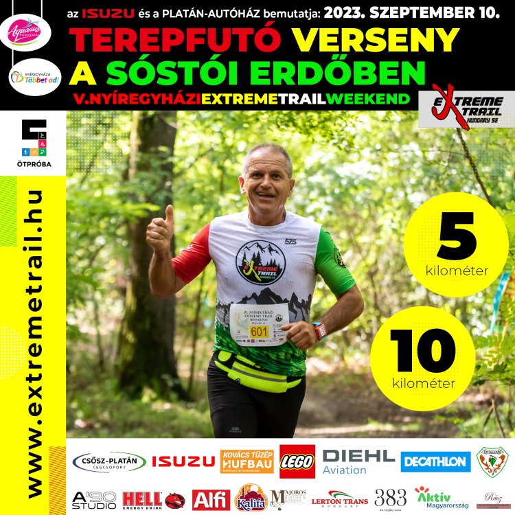 A szeptember ismét Extreme Trail Weekenddel indul Nyíregyházán. 5. alkalommal rendezik meg a terepakadályfutó versenyt szeptember 9-10-én.Az esemény helyszíne most is az Aquarius Élmény- és Parkfürdő területe. Új akadályokkal is készülnek a szervezők. A felnőtteknek 5km és 10km-es távon 25 akadályt kell teljesíteniük. A gyerekeknek korosztálytól függően szintén egy rövidebb és egy hosszabb távon kell versenyezniük.