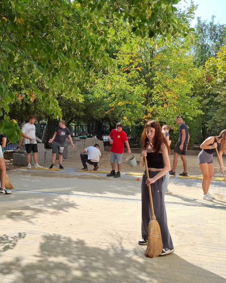 A Nyíregyházi SZC Vásárhelyi Pál Technikum tanulói összesen 138 m² térburkolatot, 28 m szegélyt, szikkasztó gerendát, valamint egy 12 m-es kerítést készítettek el.