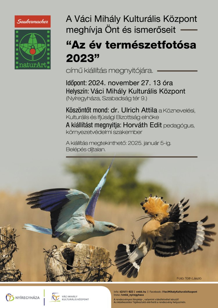 „Az év természetfotósa 2023” címmel rendez kiállítást a Váci Mihály Kulturális Központ. A megnyitó november 27-én, 13.00-kor lesz az intézmény aulájában.