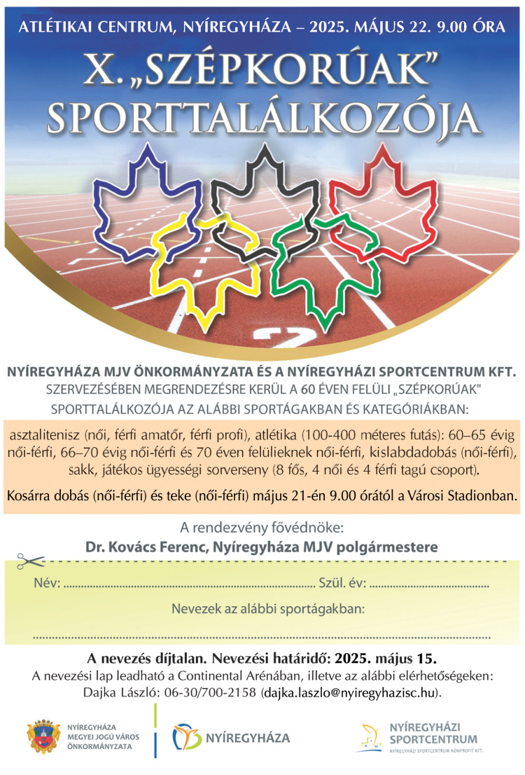 X. alkalommal rendezik meg Nyíregyházán a "Szépkorúak" Sporttalálkozóját. Az eseményre május 22-én 9.00-kor kerül sor.