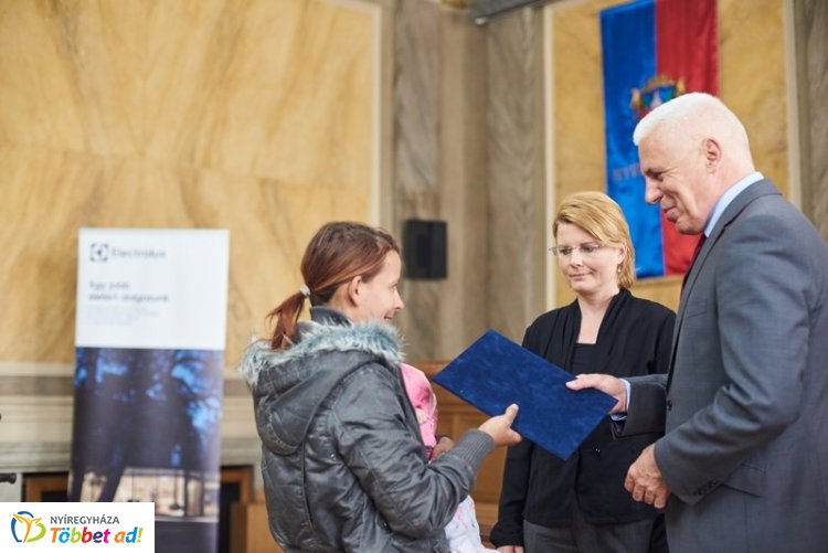 Az adományozó leveleket Dr. Kovács Ferenc polgármester, Dr. Ulrich Attila alpolgármester és Kiss Aranka, az Electrolux Lehel Kft. kommunikációs vezetője adta át a családok képviselőinek a városháza Krúdy termében