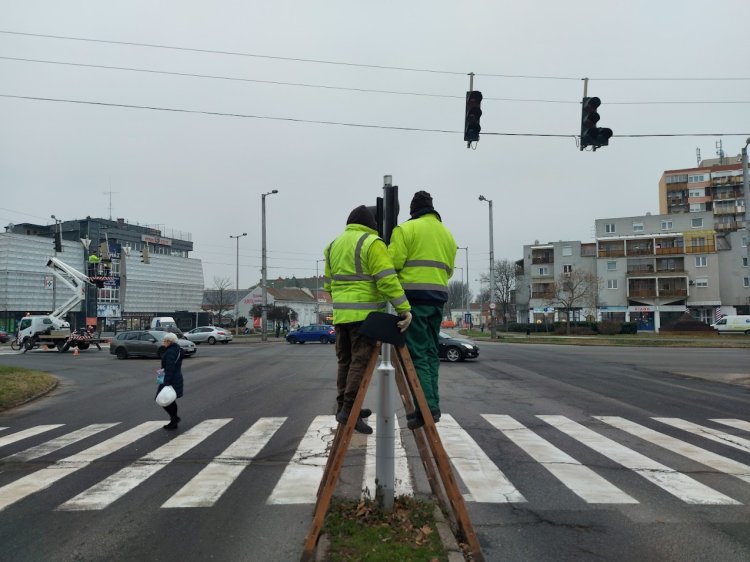 A szakembereknek közel egy napjába került, hogy a régit le, az új lámpákat pedig felszereljék a város egyik forgalmas kereszteződésében. Tegnap estétől már a megszokott rendben folyt itt a közlekedés.