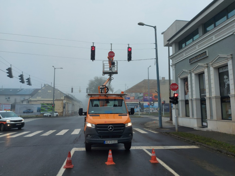 Folytatódik a régi megvilágított KRESZ-táblák cseréje a belvárosban.