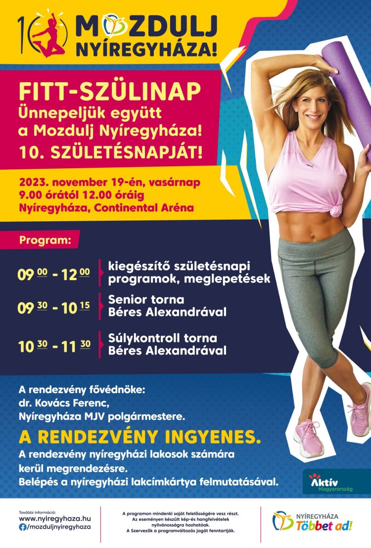 November 19-én igazi Fitt-szülinapot tart a város, amelyen Béres Alexandra lesz az edző.