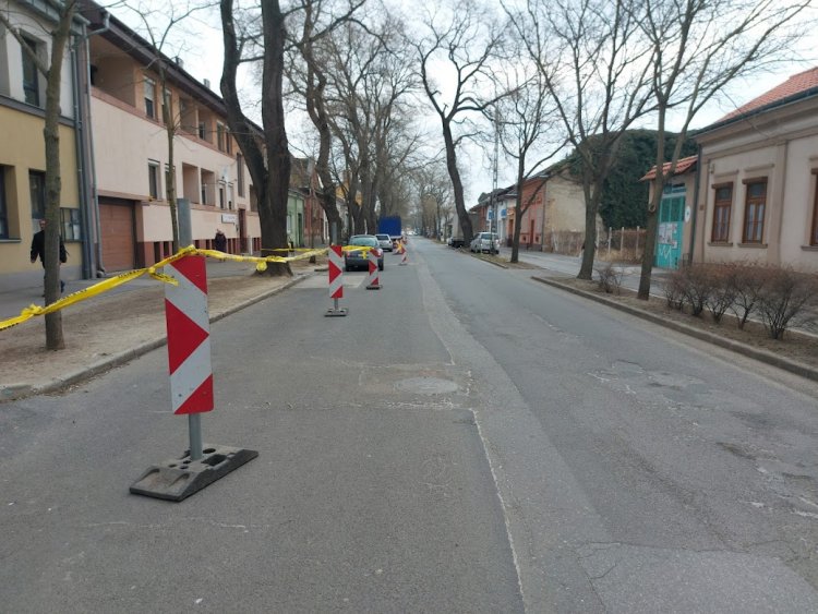 A parkoló egy részét lezárták, arra kérik a lakosságot, hogy ne álljanak ide, mert az ott parkoló járművek feltartanák a munkát.