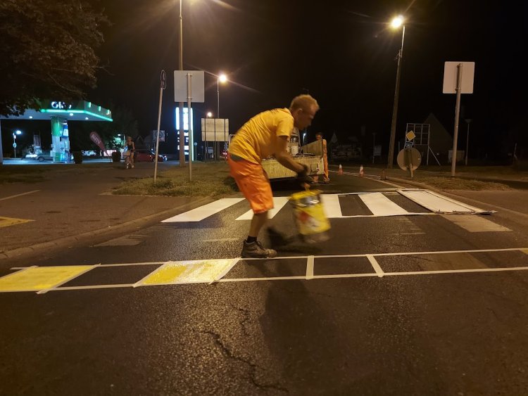 Megújultak az útburkolati jelek a Tiszavasvári út és a Fészek utca körforgalmában.