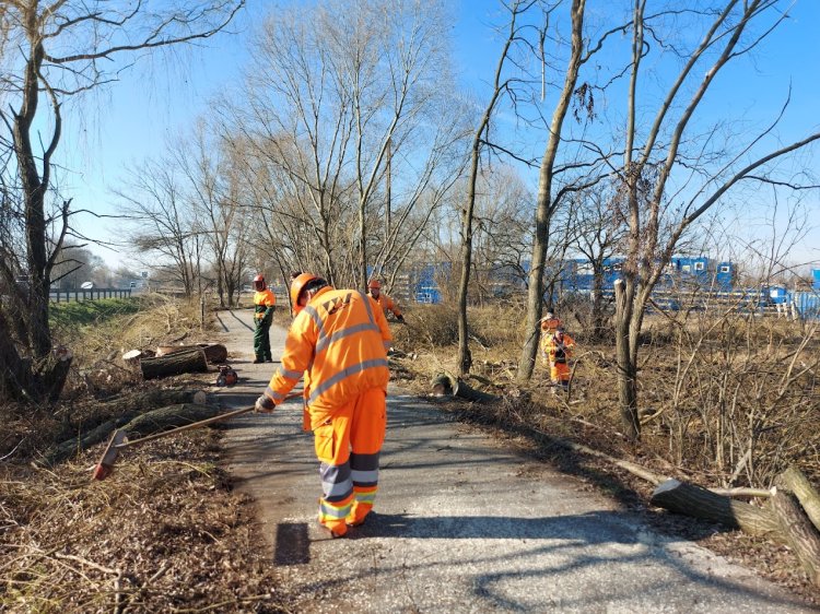 Ápolta fákat, és a veszély lelógó ágakat eltávolította a Magyar Közút Nyíregyházi Üzemmérnöksége a 4-es főúttal párhuzamosan futó kerékpárútról.