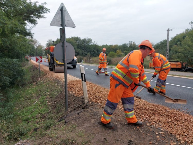 Padkarendezési munkálatokat végzett a Magyar Közút Nyíregyházi Üzemmérnöksége Nyírtura és Nyírpazony között, a 4-es főúton.