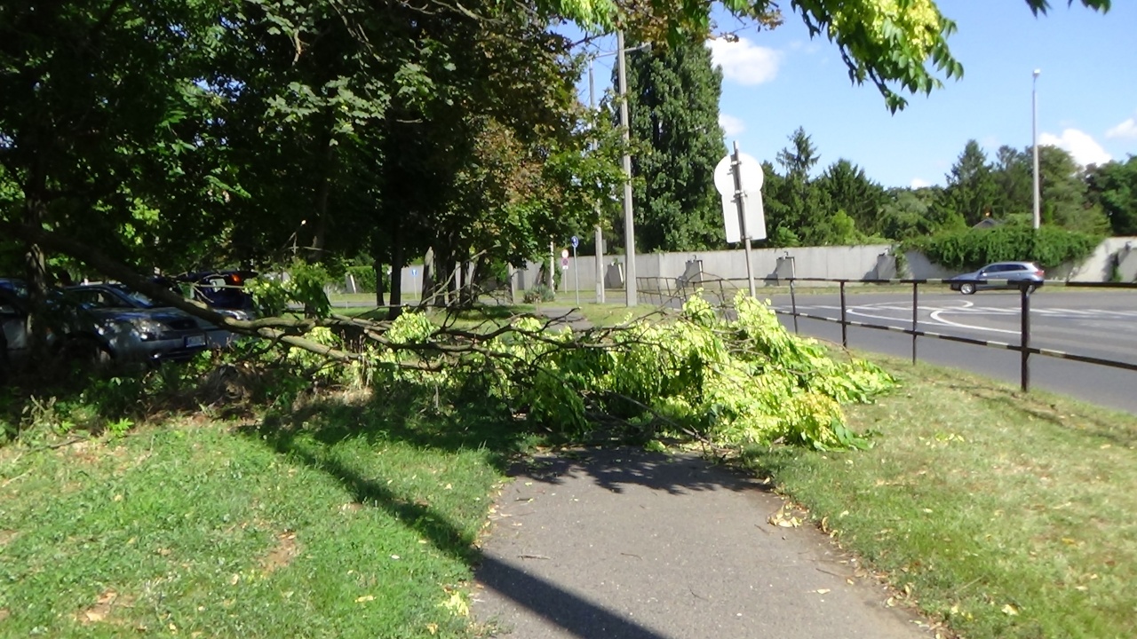 A kitört faág közúti akadályt okozott a járdán, így a NYÍRVV Nonprofit Kft. munkatársai eltávolították a helyszínről.