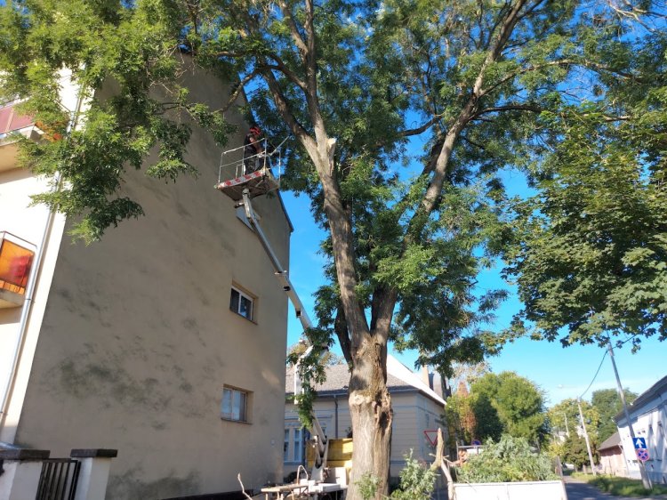 A faápolást az itt élők szorgalmazták. Szerencsére ez nem jelenti azt, hogy a fát kellett kivágni ahhoz, hogy élhetőbbé váljon egy társasház. Emelőkosárból csak az érintettágakat vágták le. A munkálatok ideje alatt forgalomkorlátozás volt az utcákban.