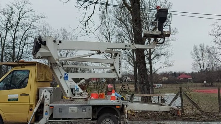 Faápolási és -ritkítási munkálatokat végeztek a Kollégium utcán, ezzel megakadályozva, hogy ne hajoljanak az ágak az elektromos vezetékre.