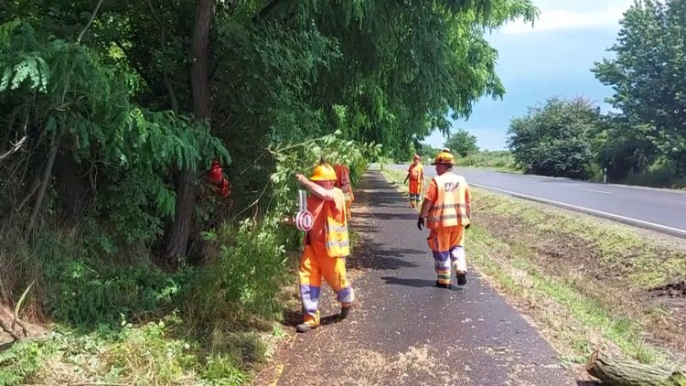 A Magyar Közút nyíregyházi üzemmérnöksége Kőlapos és Nyírpazony között faápolási, gallyazási munkálatokat végez.
