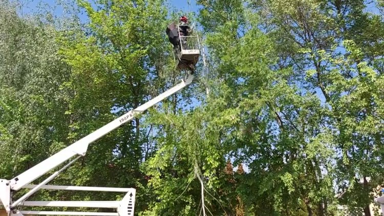 A NYÍRVV Nonprofit Kft. munkatársai lakossági bejelentésre érkeztek a helyszínre, emelőkosárból vágták le a száraz ágakat.