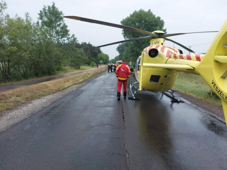 A balesetben a jármű hat utasa megsérült, a helyszínre mentőhelikopter érkezett.