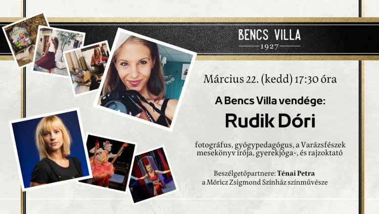 Rudik Dóri fotográfus, gyógypedagógus, a Varázsfészek mesekönyv írója, gyerekjóga-, és rajzoktató, lesz a Villa vendége 2022. március 22-én, kedden 17:30 órától. Ténai Petrával, a Móricz Zsigmond Színház színművészével többek között a képek erejét, varázslatos világát, gyógyító hatását járják körbe, legyen az egy rajz egy mesekönyvben, vagy egy feltöltött fotó a közösségi médián.