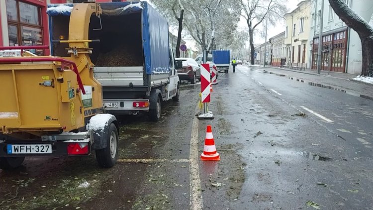 Favágási, faápolási munkálatokba kezdtek hétfő reggel a Szent István utca elején