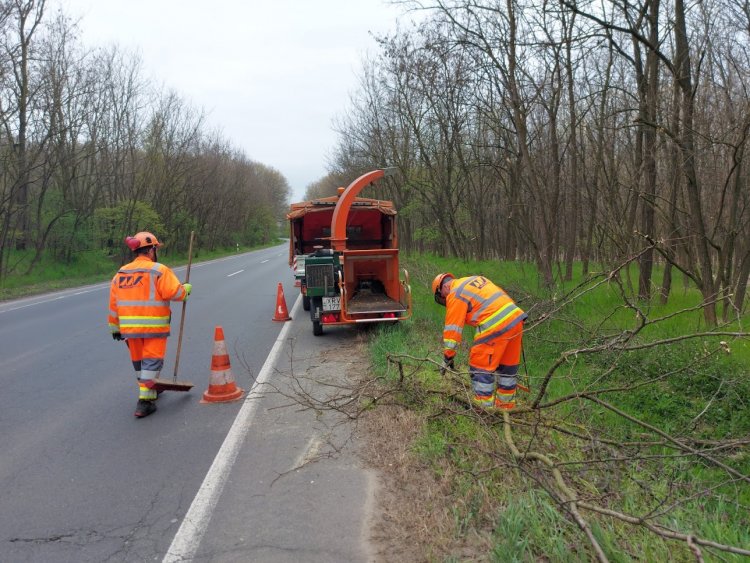 Favágási, faápolási munkát végeznek a Magyar Közút szakemberei a Sóstói és a Kemecsei úton.