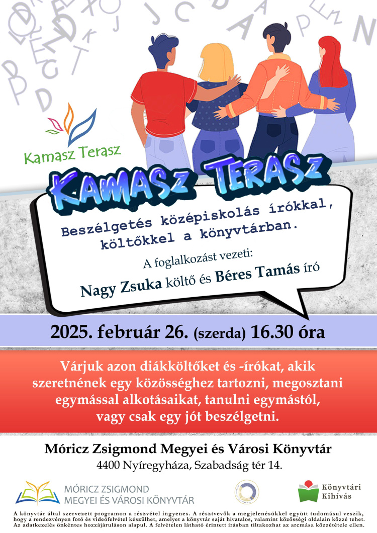 Helyszín: Móricz Zsigmond Megyei és Városi Könyvtár – A helyszínről facebook oldalunkon tájékozódhatnak.
