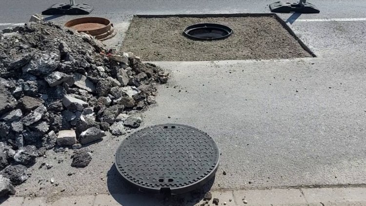 A Debreceni úton a Tünde és a Lejtő utca között közmű fedlap cseréjét kezdték meg a