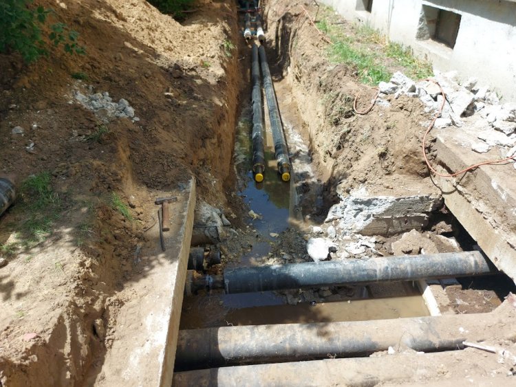 A NYÍRTÁVHŐ egy cső cseréjét végzi, ami miatt a járda egy részét is felbontották.