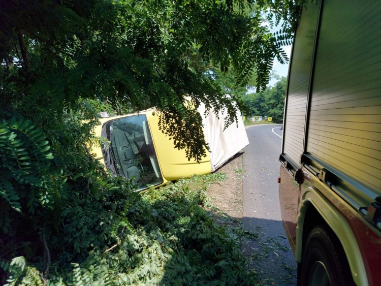 Felborult egy kisteherautó a Simai úton, a sofőrt kórházba szállították